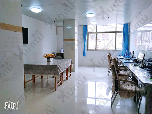 我们把办公桌统一靠墙,把破旧的长方桌重新打造,罩上了桌罩, 即增加了空间的利用率,一方面方便了病人就诊,另一方面同事们有了独立的学习桌,可以围在一起,讨论分析疑难问题。桌上手工盆景增加了学习的风采。