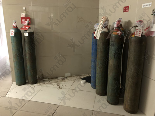 原氧气筒放置脏乱差,无安全标识,无分界