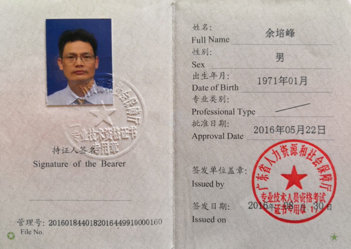 “三高一长管控法”“四点点检法”、“四进管理法”、“六力五勤工匠建设”、“备件蝶形十步管理法”理念提出者,16-17年度广东省企业咨询管理协会金奖取得者。