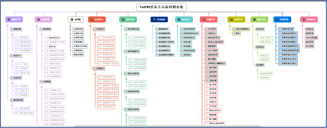 公司为加强设备管理,提高设备管理能力,优化流程、实现设备数据化、信息化升级管理,对设备管理进行信息的收集、传输、加工、储存、更新和维护,本期主要包括设备台账、维修管理、故障管理、设备保养、点巡检管理、特种设备管理、备件管理、报表统计功能模块等内容,以此为突破点,全面提升设备管理体系运作水平并进行信息化建设,为集团核心竞争力打造做出贡献。