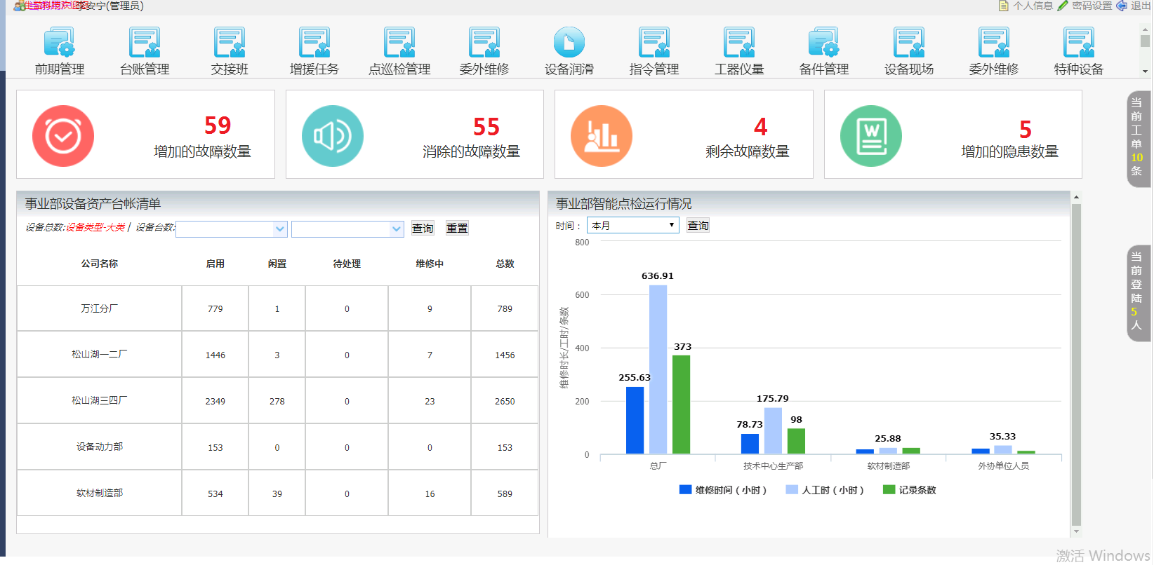 顺利获得本项目的建设实施,系统实现了生益科技设备台账、维修管理、故障管理、设备保养、点巡检管理、特种设备管理、备件管理、报表统计等功能。