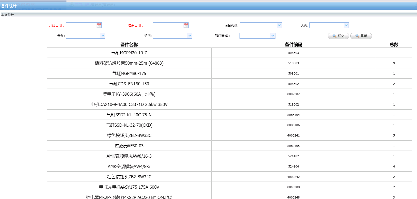图5备件统计表